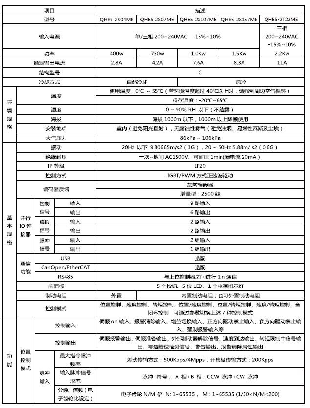 QHE5系列伺服驅(qū)動器產(chǎn)品是本公司結(jié)合市場需求研制的通用型交流伺服驅(qū)動器。該系列產(chǎn)品的功率范圍為400~2.2KW,單/三相220V電壓等級,具有豐富的通訊接口,可支持光電、旋變等多種編碼器,采用先進(jìn)的控制算法,能實(shí)現(xiàn)轉(zhuǎn)矩、轉(zhuǎn)速、位置精確的數(shù)字控制。大幅度提升伺服電機(jī)尺寸的對應(yīng)性和產(chǎn)品特性的匹配度,可方便的替換其他品牌。