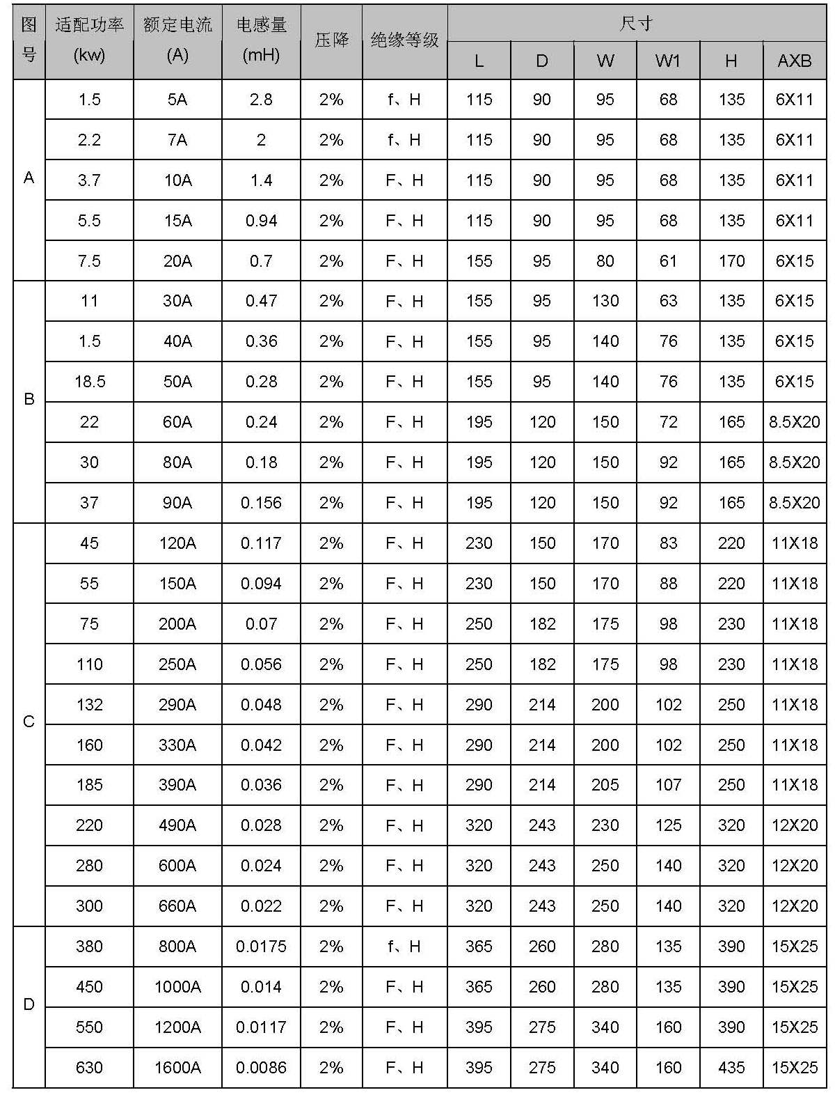 (17)執(zhí)行標(biāo)準(zhǔn):IEC289:1987電抗器、GB10229-88電抗器(eqvIEC289:1987)、JB9644-1999半導(dǎo)體電氣傳動用電抗器